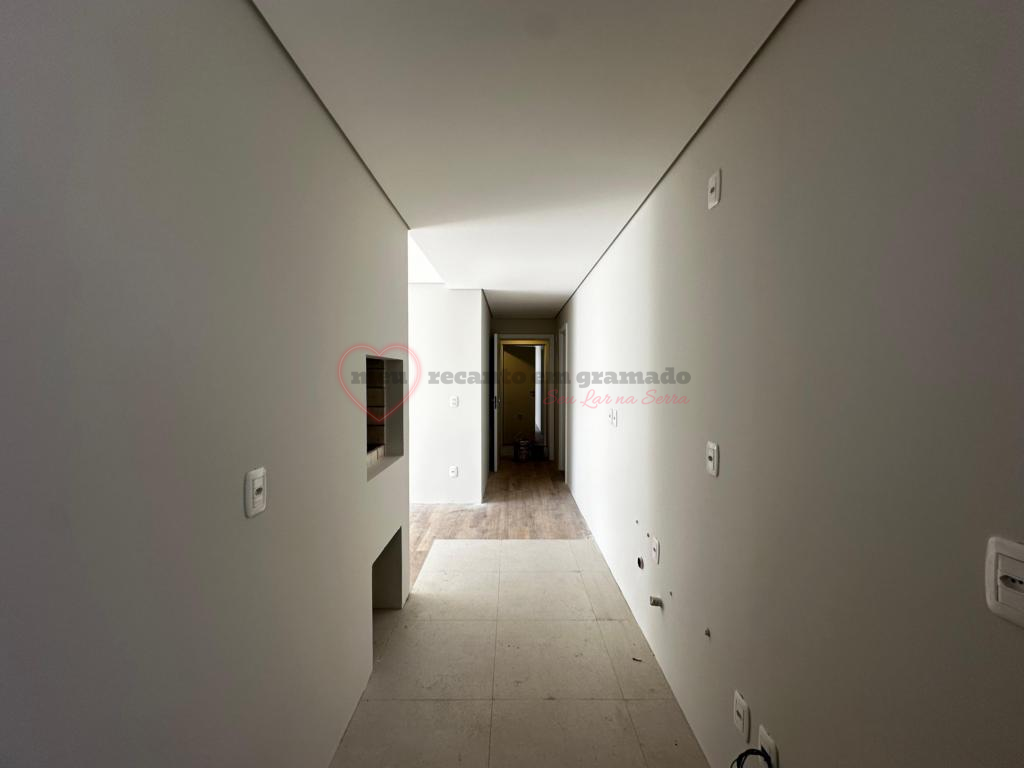 Apartamento novo nunca habitado, composto por 1 suíte, lavabo, cozinha com churrasqueira, sala de estar com espera para lareira, sala de jantar, área de serviço e 1 vaga de garagem.