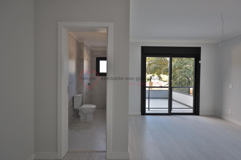 A suíte garante privacidade, enquanto a sala de estar e jantar em conceito aberto proporcionam um ambiente aconchegante e integrado para receber visitas ou relaxar.